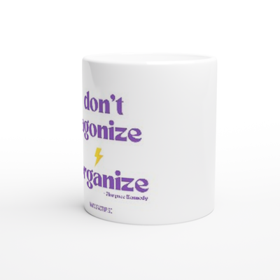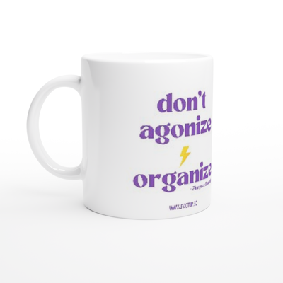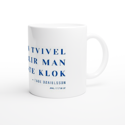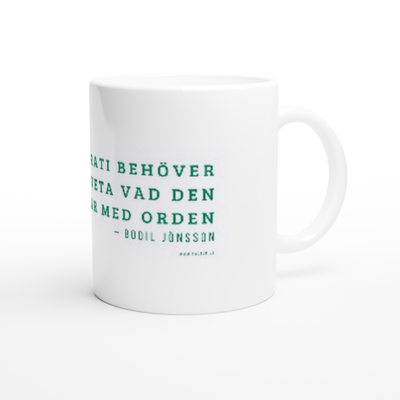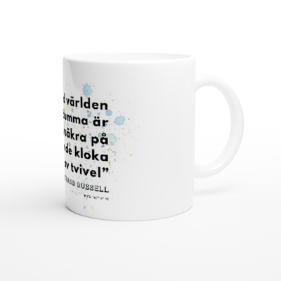 Din morgonkaffe, en varm choklad eller någon annan varm dryck du gillar. Muggen är glansig vit med en färgad kant, insida och handtag. Trycket behåller sin kvalitet och glans när den används i både mikrovågsugn och diskmaskin.